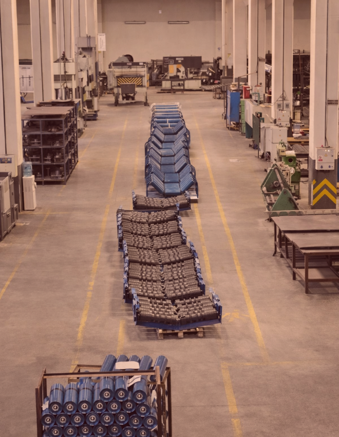 Production is carried out in Pres-San’s facilities, consisting of 7,500 m² of indoor and 1,500 m² of outdoor manufacturing space. With the integration of fully automated roller production lines and robotic welding systems for conveyor stations in 2022, our annual production capacity has increased from 1,000,000 to 2,000,000 units, ensuring high consistency, precision, and reliability.