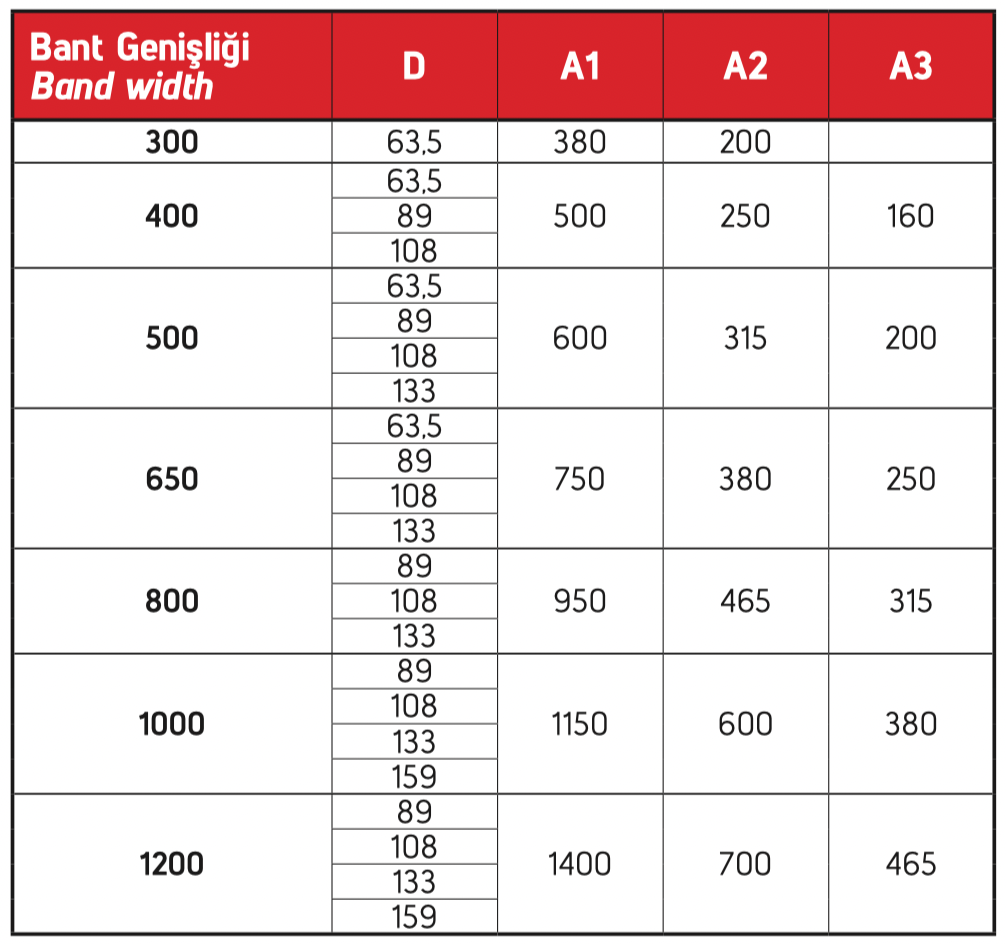 Roller spacing, diameters, and materials are determined by the type of product being transported. Galvanized, rubber, or PVC-coated rollers are designed to meet customer requirements. Usage areas and capacities vary depending on the intended application.